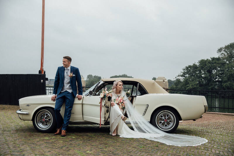 Huur voor uw bruiloft onze Ford Mustang cabrio voor een onvergetelijke trouwdag. Deze klassieker vervoert u in stijl naar uw locatie. Met de kap open zal iedereen u kunnen zien stralen van geluk. De Ford biedt ruimte voor 3 personen als de auto gehuurd wordt met chauffeur. Zelfs 4 als u er voor kiest om zelf te rijden.